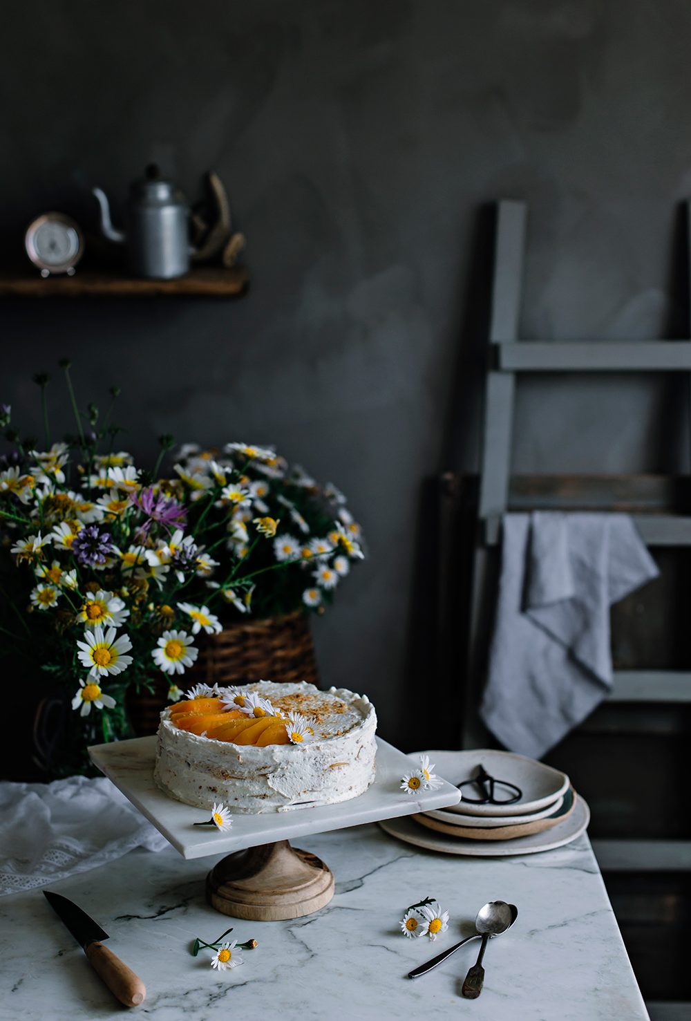 Tarta de melocotón y queso
